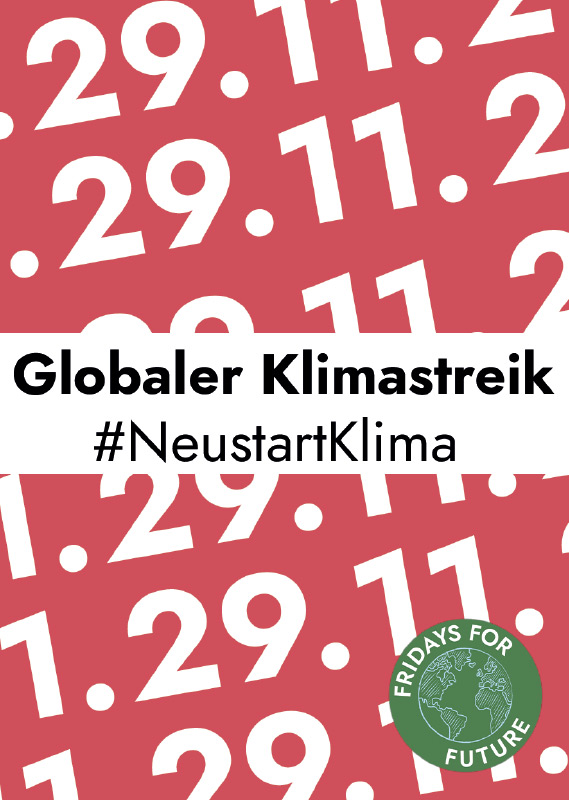 … und weiter geht´s: Da tatkräftige Bemühungen der Regierung um Reduzierung der CO2-Emissionen und anderer dringender Maßnahmen für unsere lebenswerte Zukunft auf sich warten lassen (mal nix überstürzen, kommt Zeit, kommt – mal wieder nix?), streiken wir weiter. Am 29.11.…