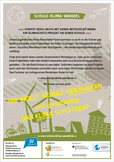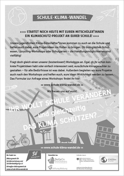 • für ›Schule·Klima·Wandel‹-Workshops an deiner Schule kostenlos Werbung machen!